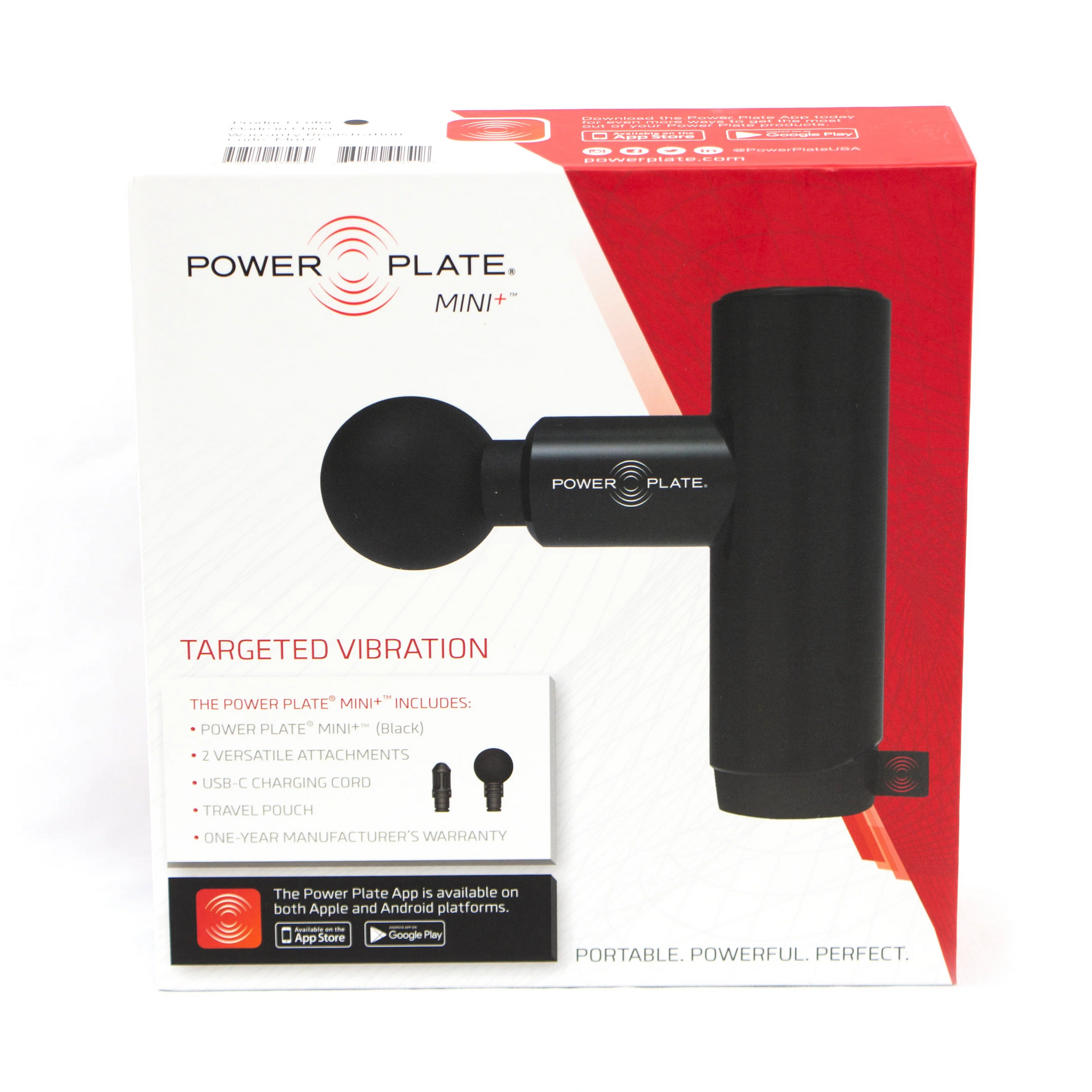 Weighing just under 1lb, the Power Plate Mini+ is conveniently sized to fit into a purse, backpack, or gym bag, giving you quality treatment, anytime, anywhere with its two unique attachments.